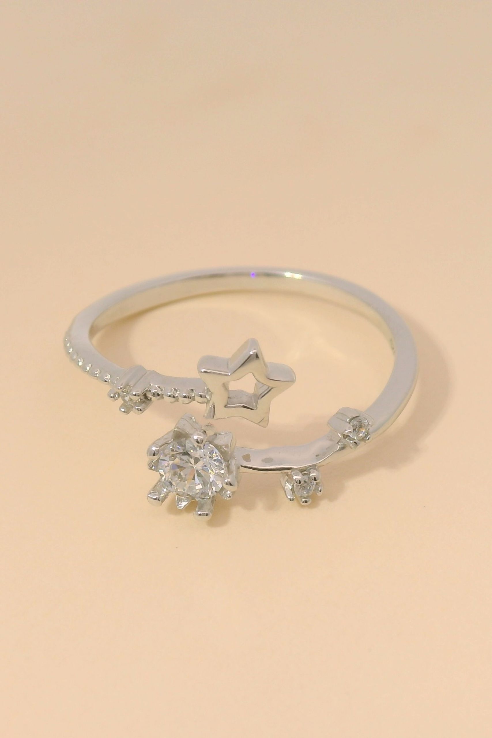 Anillo de circonitas con estrellas.
