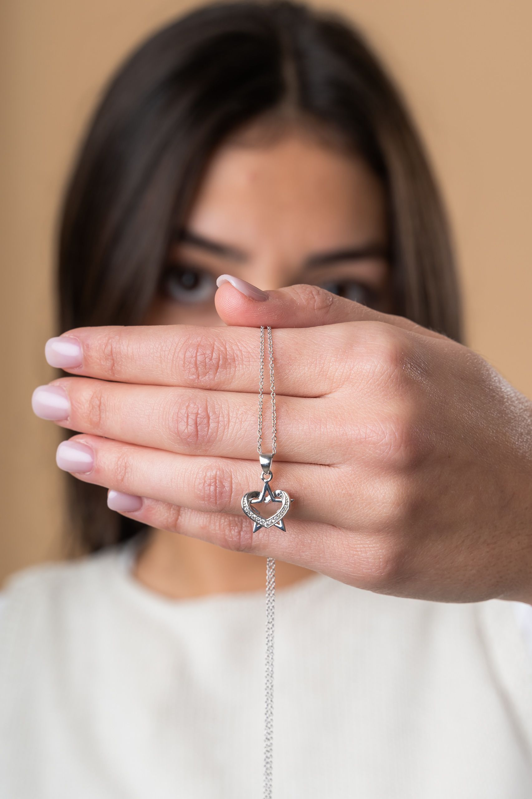 Colgante con silueta de corazón y estrella.