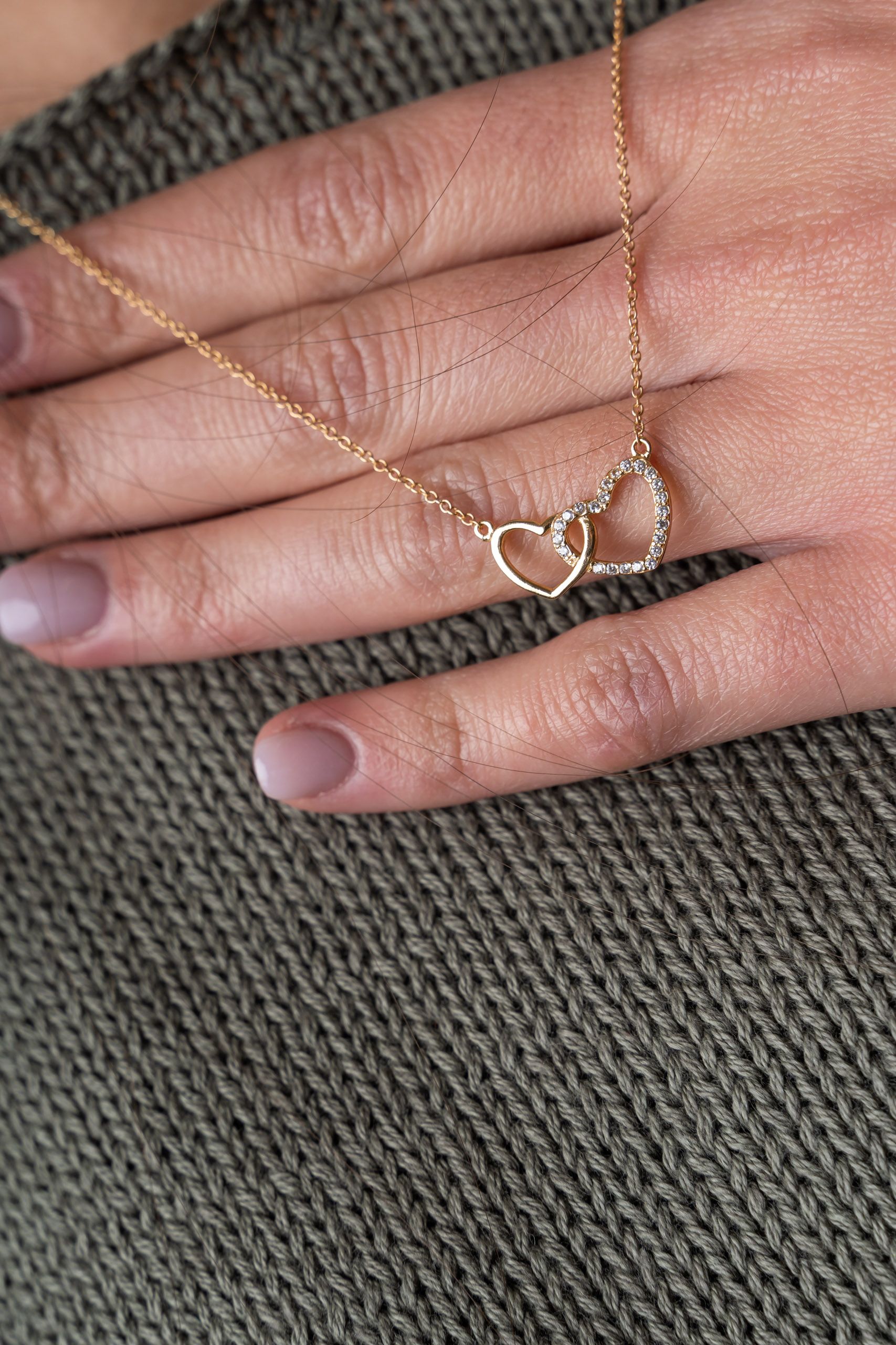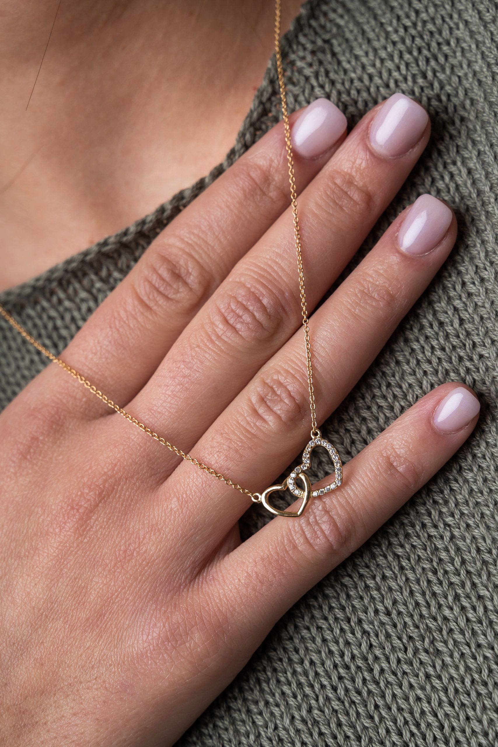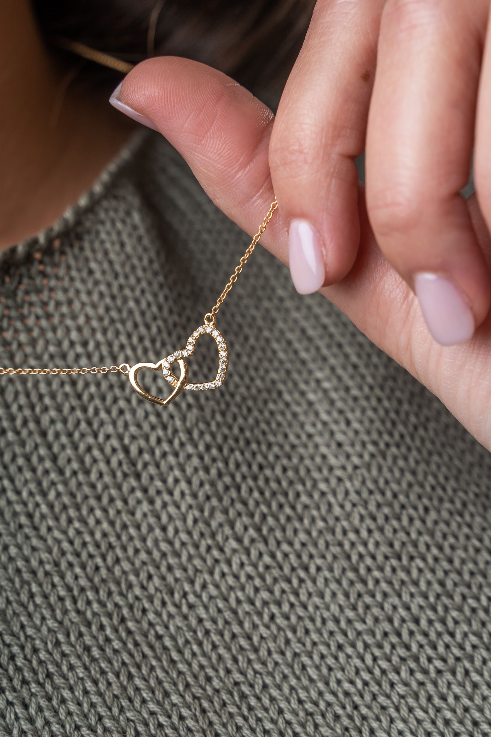Colgante con silueta de corazones entrelazados.