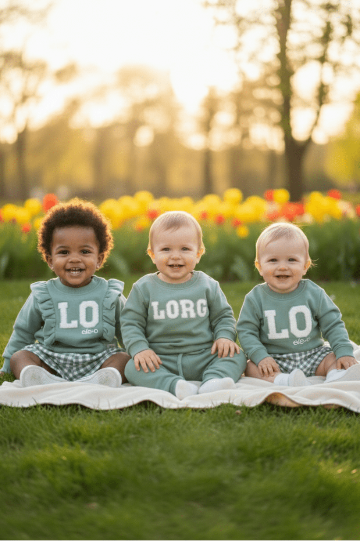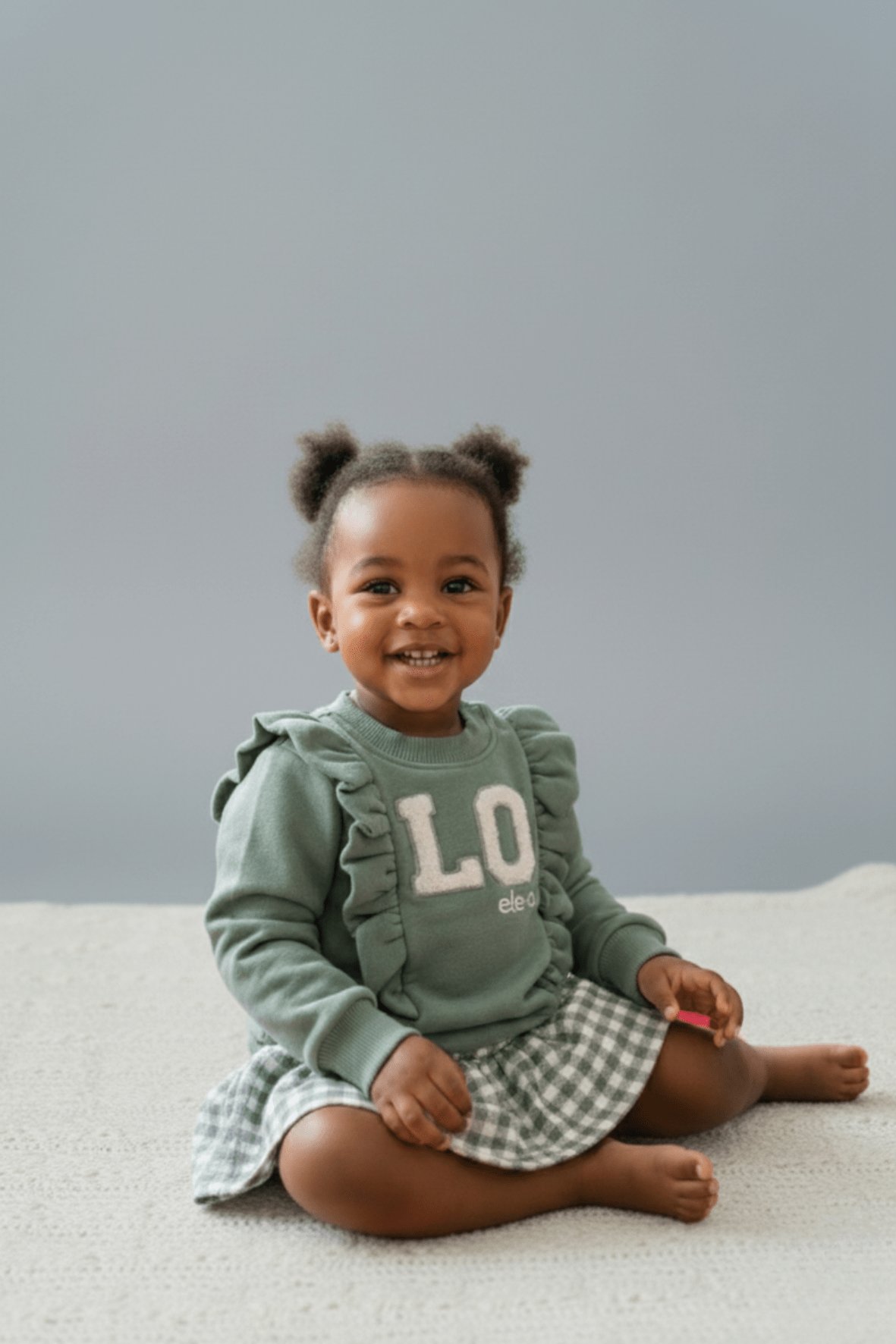 Conjunto para bebé: braga falda con cuadros vichy y sudadera de color verde.