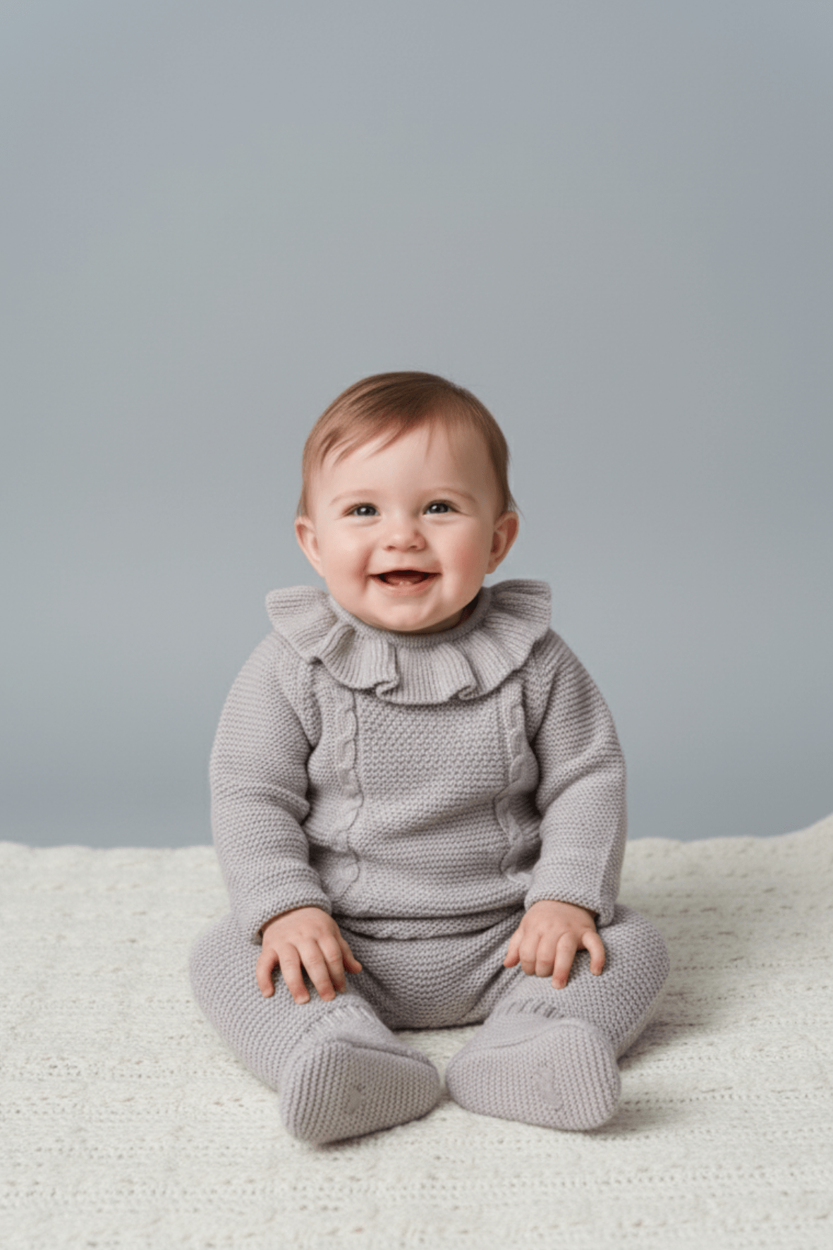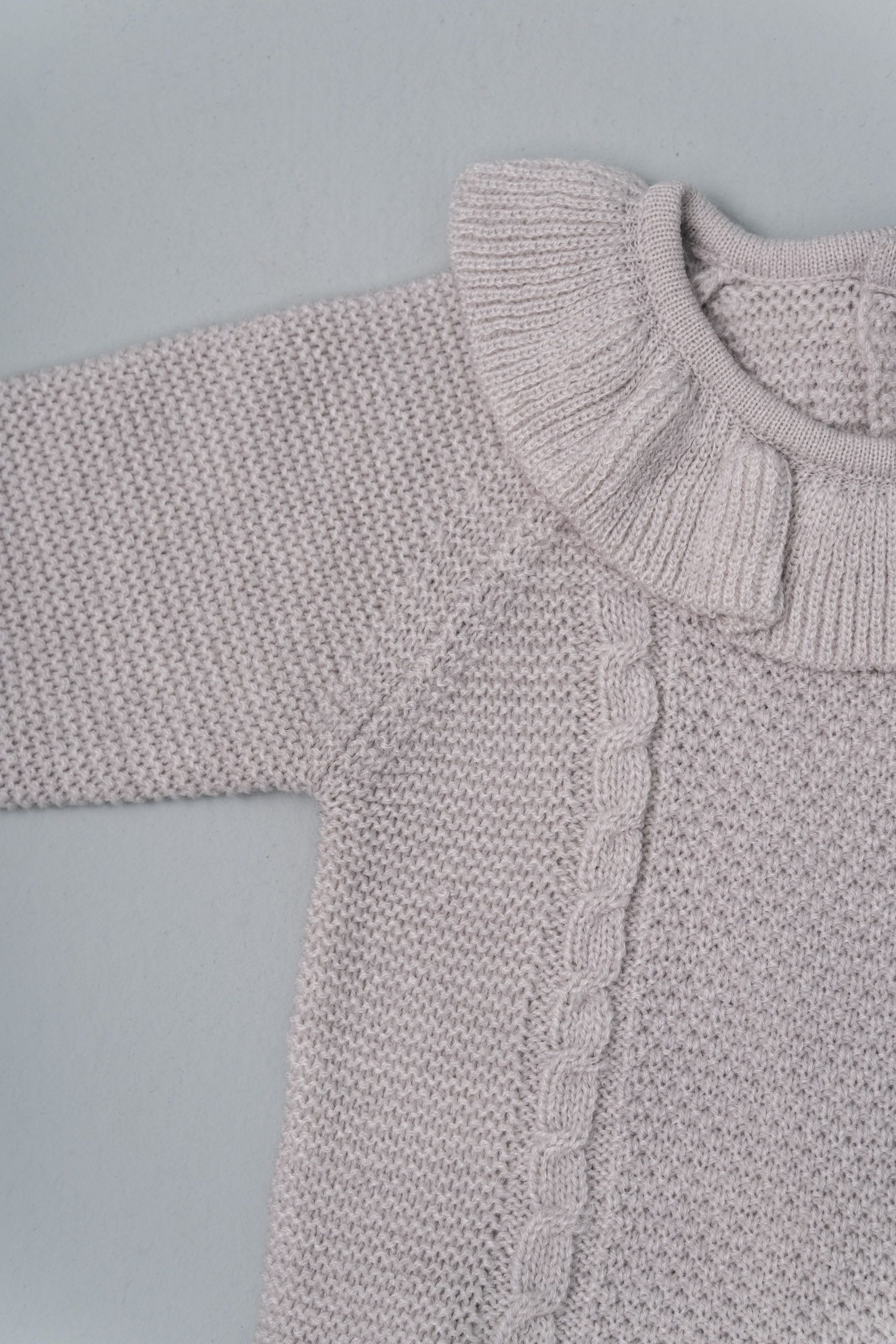Conjunto polaina más chaleco tono gris con cuello de volante.