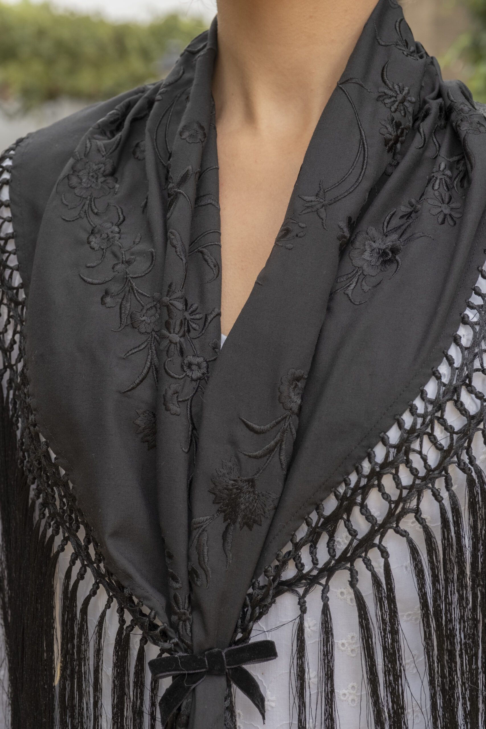 Mantón Flecos Negro Bordado Negro