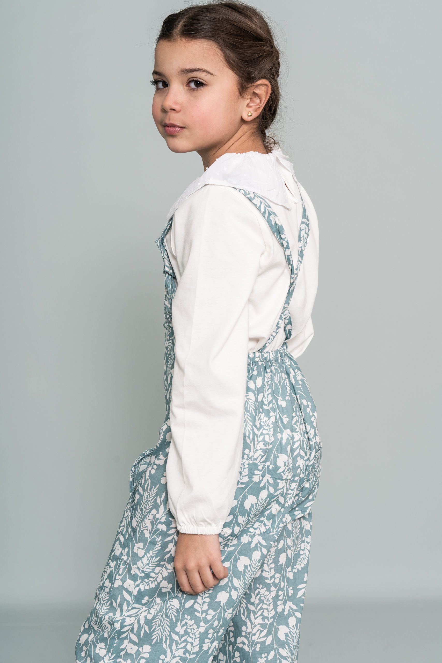 Mono en tonos verdes con detalle de punto inglés y cruce en espalda.