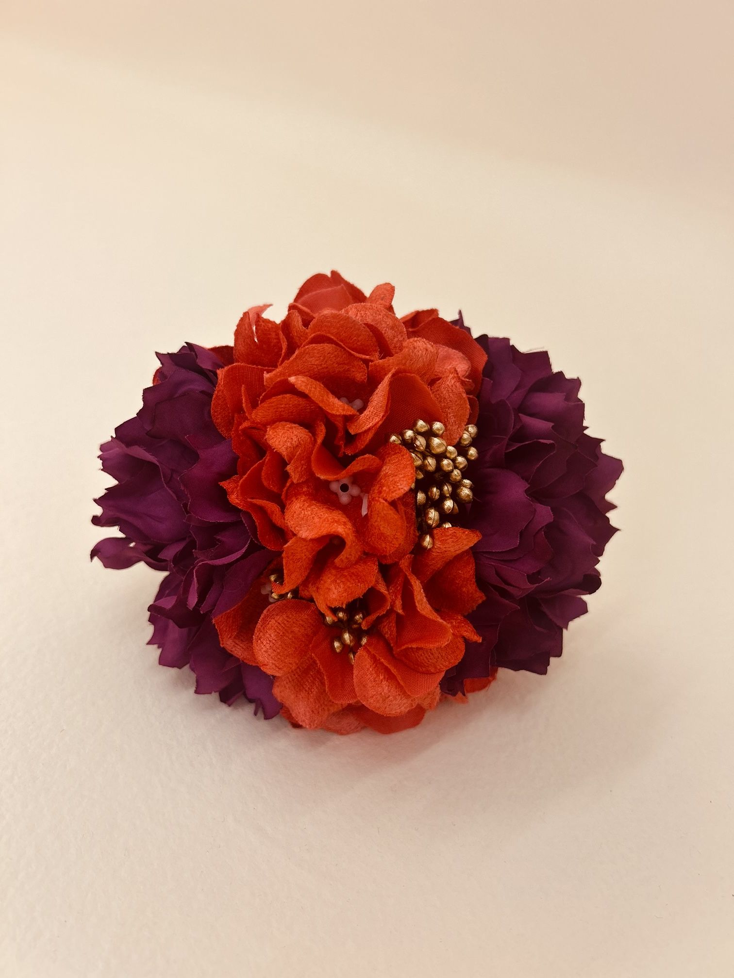 Ramillete con flores de color buganvilla y naranja.