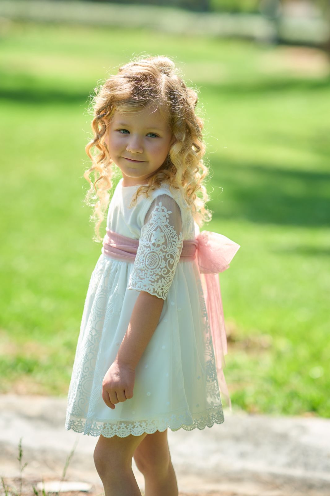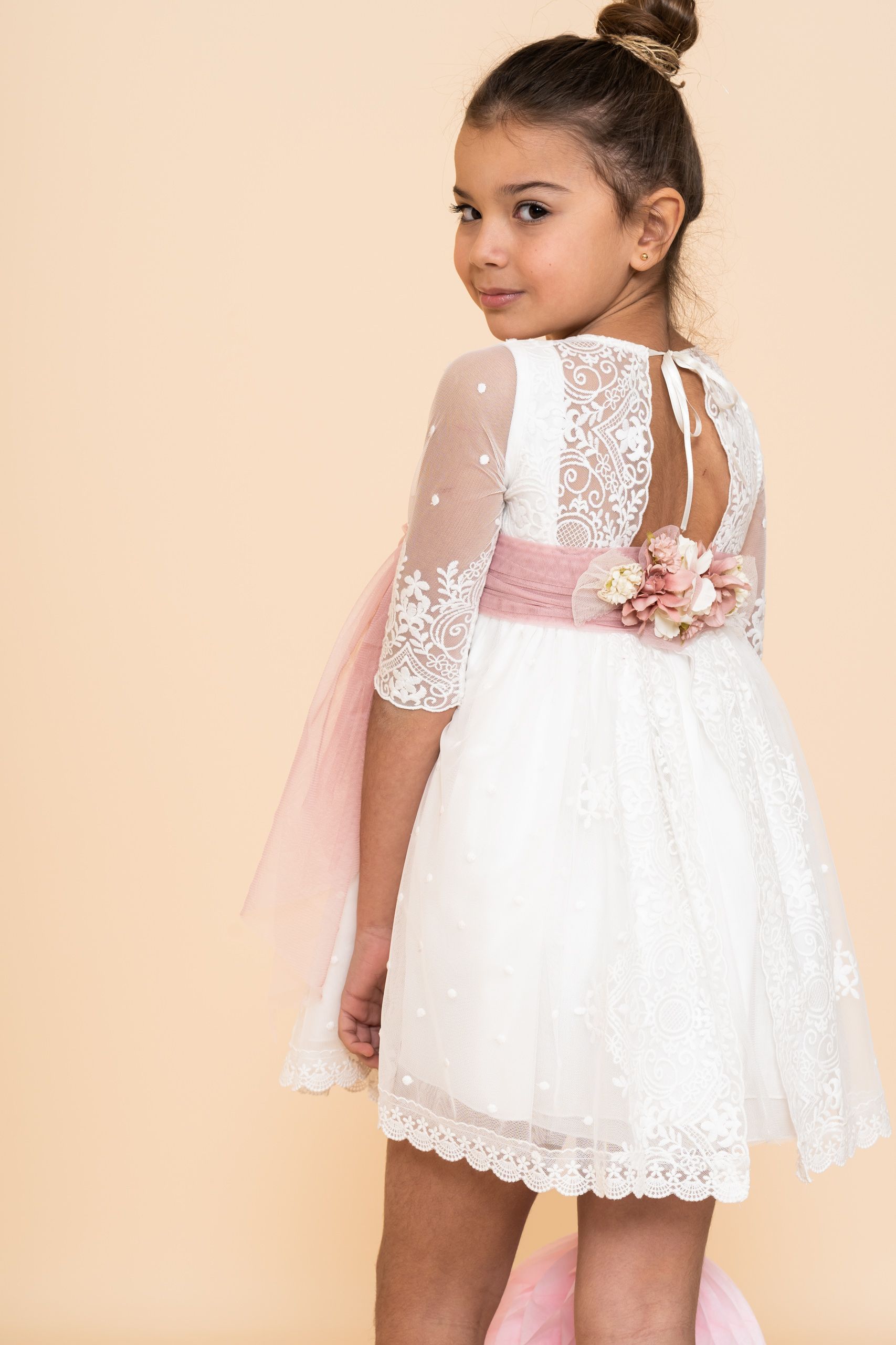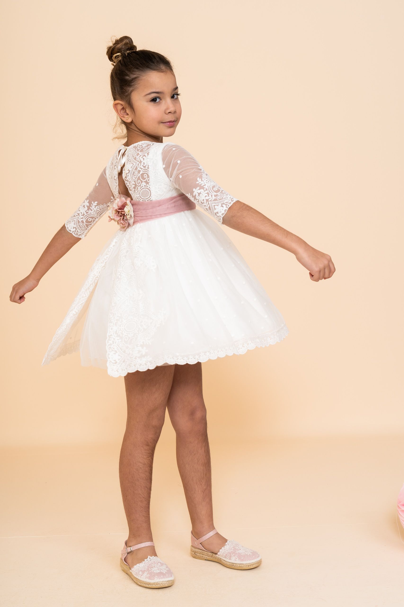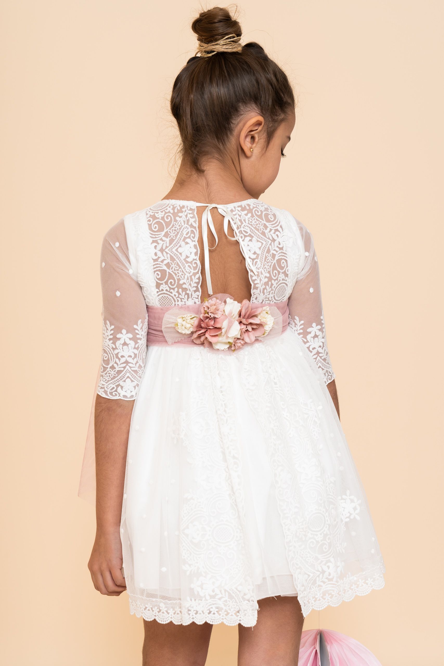 Vestido Niña Tul Bordado Blanco Espalda